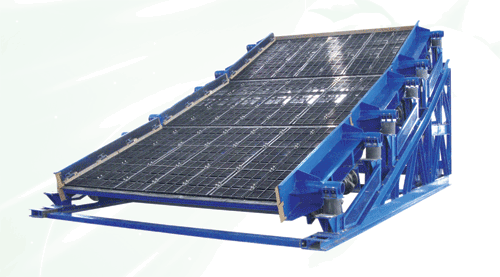 由于受承載極限轉速的限制及篩框結構強度的影響,目前國內的傳統振動篩不易做到高頻化、大型化。等厚分段篩分為多段篩分單元,各篩分單元分別獨立振動,使得各篩分單元均可實現較大的振動強度,大振動強度可大幅度提高振動篩的生產率和篩分效率,同時使篩子實現了大型化。各篩分單元的獨立振動,對機架的振動得以分散,可降低整機的振動強度,由于等厚分段篩在設計原理上所具有的優點,使得等厚分段篩具有使用壽命長,噪聲低,對廠房影響小的特點,是一種環保型篩分設備。
